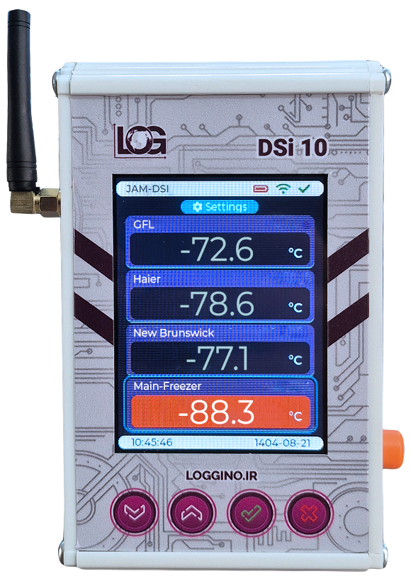 دیتالاگر آنلاین فریزر منفی 80 (دیپ فریزر) لاگینو مدل DSi10 محصولی تخصصی از خانواده دیتالاگرهای هوشمند آنلاین لاگینو است که برای پایش دما در فریزرهای فوق‌سرد (دیپ فریزر) طراحی شده است.